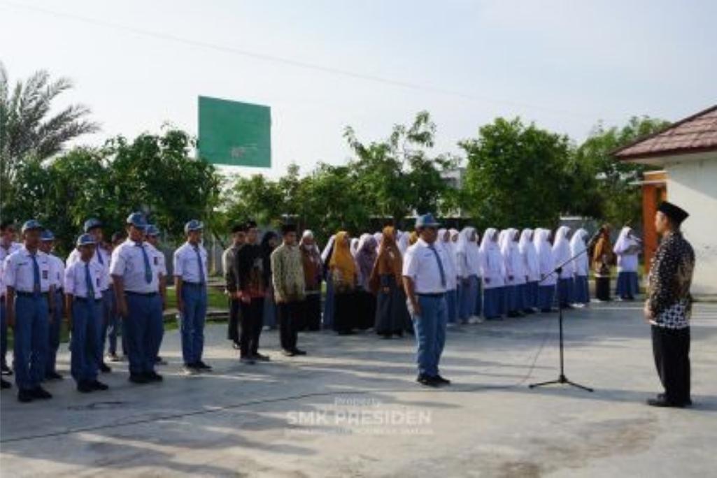 SMK President, pada pagi hari ini, 1 Oktober 2024, melaksanakan upacara bendera dalam rangka memperingati Hari Kesaktian Pancasila. Kegiatan ini diikuti oleh seluruh santri dan guru-guru sekolah, berlangsung dengan khidmat di lapangan utama sekolah.
